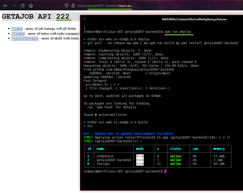 Publish frontend/backend TypeScript/ES6-Module sites online on Hetzner/Arch/Caddy/pm2 box