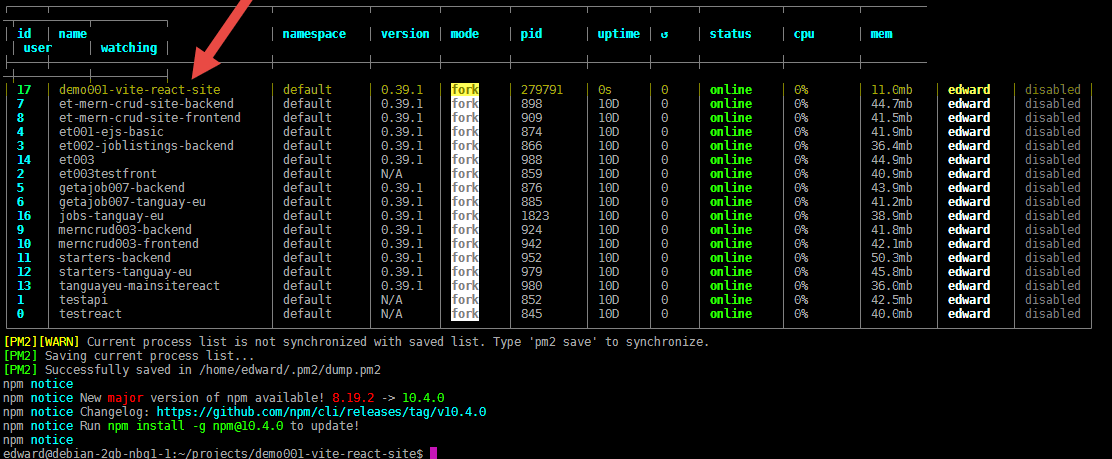 "setup": "npm i && pm2 start --name demo001-vite-react-site npm -- start --update-env --time && pm2 save",
